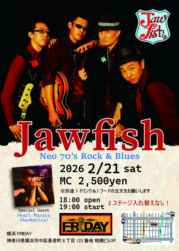 横浜・長者町フライデーでJawfish2ステージワンマンライブ!